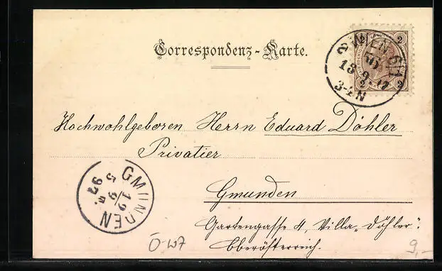 alte Ansichtskarte, gelaufen 1897, guter Zustand
