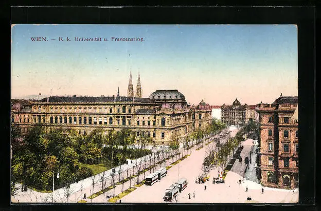 AK Wien, K. k. Universität und Franzensring, Strassenbahn