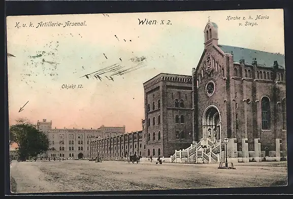 AK Wien, K. u. k. Artillerie-Arsenal und Kirche z. h. Maria v. Siege
