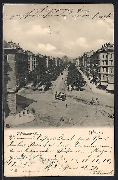AK Wien, Kärnthner-Ring mit Strassenbahn