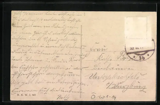 alte Ansichtskarte, gelaufen, Briefmarke entfernt, Stempelspur, Eckknicke re., guter Zustand