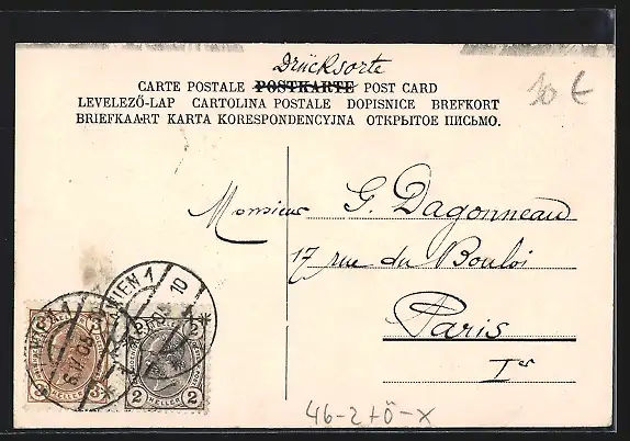alte Ansichtskarte, gelaufen 1905, Stempelspur, guter Zustand