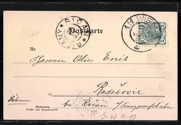 alte Ansichtskarte, gelaufen 1900, Stempelspur, guter Zustand