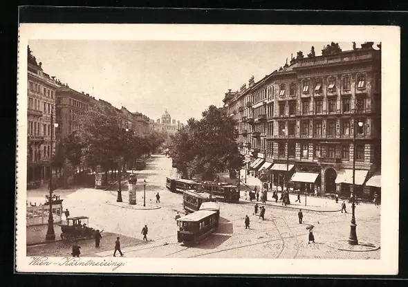 AK Wien, Kärtntnerring, Strassenbahn mit Geschäften