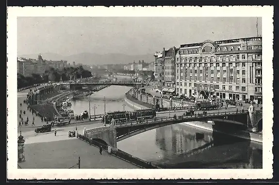 AK Wien, Kai mit Marien- und Salztorbrücke, Strassenbahn