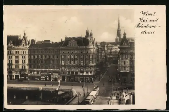 AK Wien, Kai mit Rotenturmstrasse und Strassenbahn