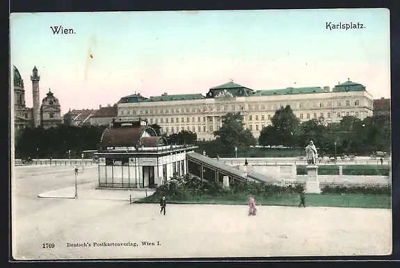 AK Wien, Karlsplatz mit Denkmal