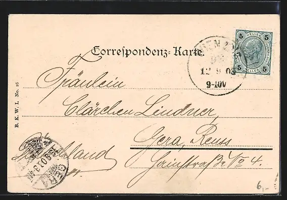 alte Ansichtskarte, gelaufen 1903, guter Zustand