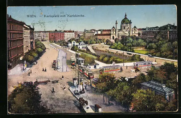 AK Wien, Karlsplatz mit Karlskirche und Strassenbahn