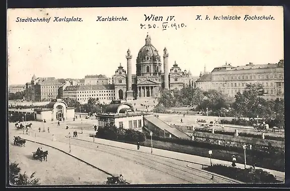 AK Wien, Karlsplatz mit Karlskirche und technischer Hochschule