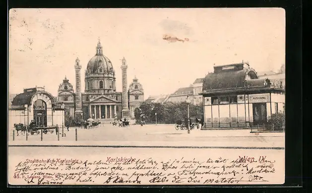 AK Wien, Karlsplatz mit Stadtbahnhof und Karlskirche