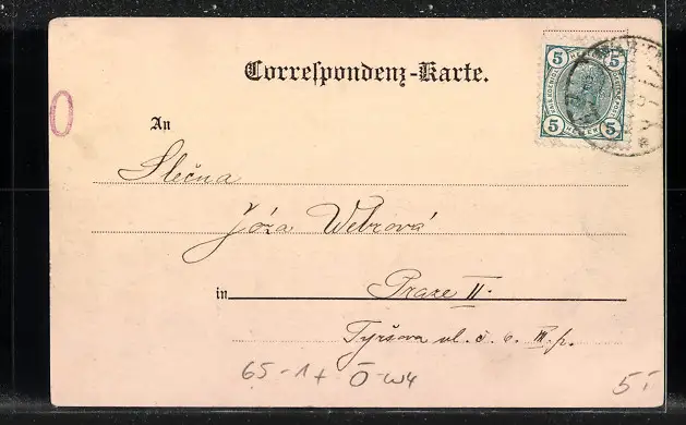 Personenbezogene Daten auf der Rückseite der Karte wurden durch blauen Textmarker unkenntlich gemacht. Die blauen Stellen sind auf die Vorderseite durchgeweicht und wirken sich negativ auf das Postkartenfoto aus