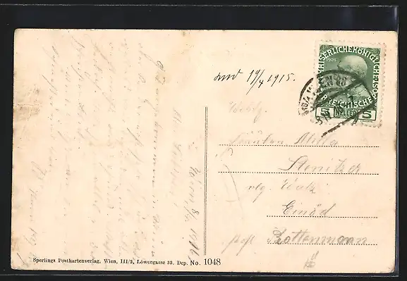 alte Ansichtskarte, gelaufen 1915, Bugspur re. senkrecht, guter Zustand