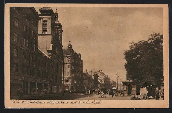 AK Wien, Landstrasse-Hauptstrasse mit Rochuskirche