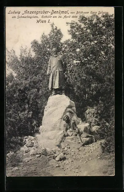 AK Wien, Ludwig Anzengruber-Denkmal am Schmerlingplatz