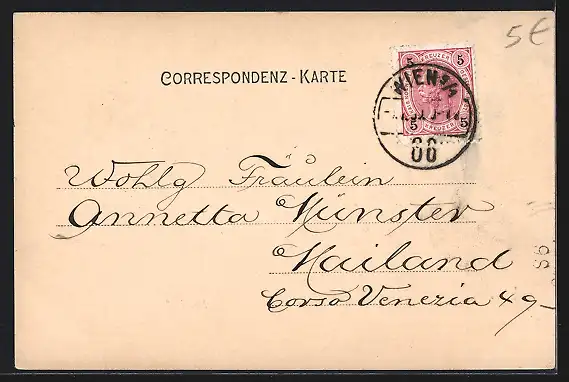 alte Ansichtskarte, gelaufen 1898, Eckknick rechts unten, guter Zustand