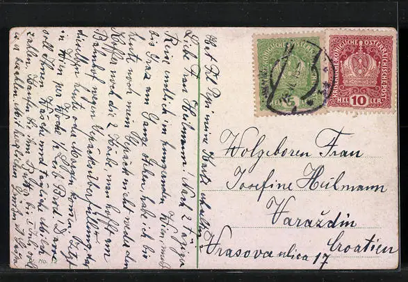 alte Ansichtskarte, gelaufen, Abriebspuren Ecken, Stempelspur, guter Zustand