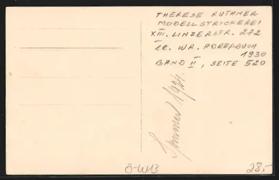 AK Wien, Mech. Strickerei v. Resi Ruthner, Linzerstrasse 272