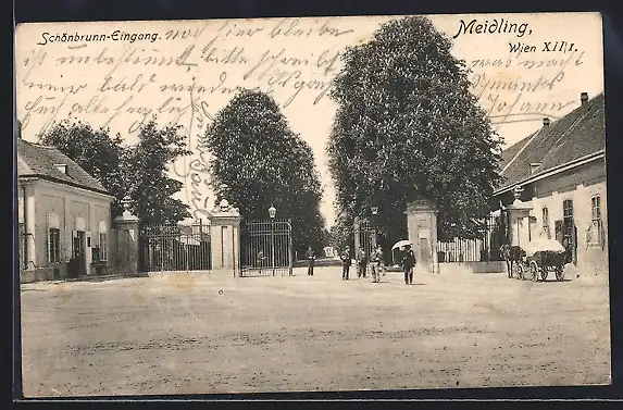 AK Wien-Meidling, Schönbrunn-Eingang mit Passanten