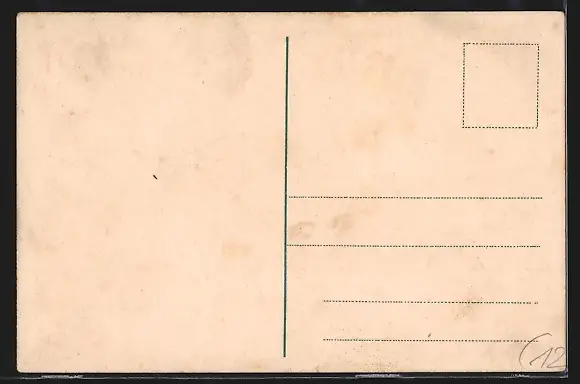Personenbezogene Daten auf der Rückseite der Karte wurden durch blauen Textmarker unkenntlich gemacht. Die blauen Stellen sind auf die Vorderseite durchgeweicht und wirken sich negativ auf das Postkartenfoto aus
