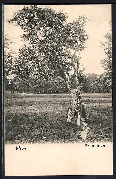 AK Wien, Mutter mit Kindern auf einer Wiese im Prater