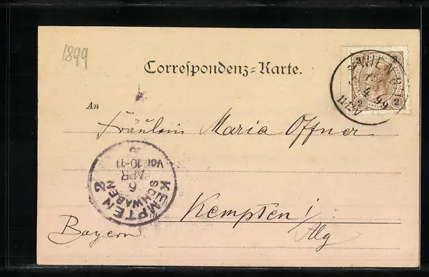 alte Ansichtskarte, gelaufen 1899, Stempelspur, guter Zustand