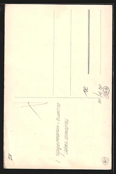 Personenbezogene Daten auf der Rückseite der Karte wurden durch blauen Textmarker unkenntlich gemacht. Die blauen Stellen sind auf die Vorderseite durchgeweicht und wirken sich negativ auf das Postkartenfoto aus