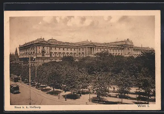 AK Wien, Neue k. k. Hofburg mit Strassenbahn