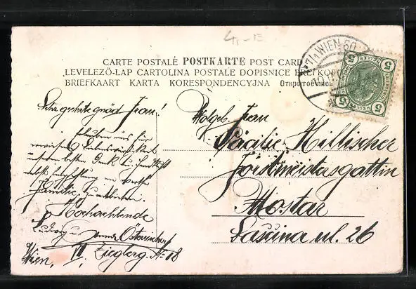 alte Ansichtskarte, gelaufen, Eckknick re. unten, Stempelspur, guter Zustand