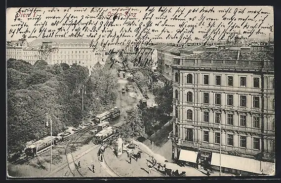 AK Wien, Opern-Ring mit Strassenbahnen aus der Vogelschau