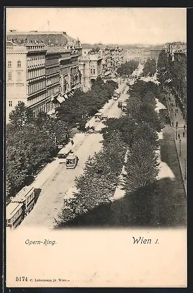 AK Wien, Opern-Ring mit Strassenbahnen aus der Vogelschau