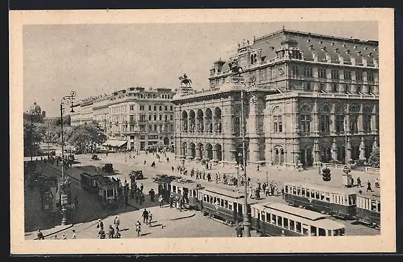 AK Wien, Opernring mit Strassenbahnen