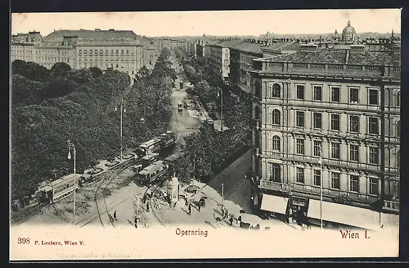 AK Wien, Opernring mit Strassenbahnen aus der Vogelschau