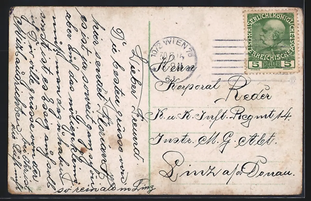 gelaufen 1916, Eckknick li. unten, Ecken bestoßen, guter Zustand