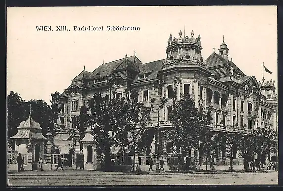 AK Wien, Park-Hotel Schönbrunn mit Strassenpartie