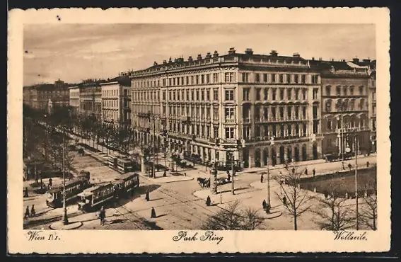 AK Wien, Park-Ring und Wollzeile, Strassenbahn