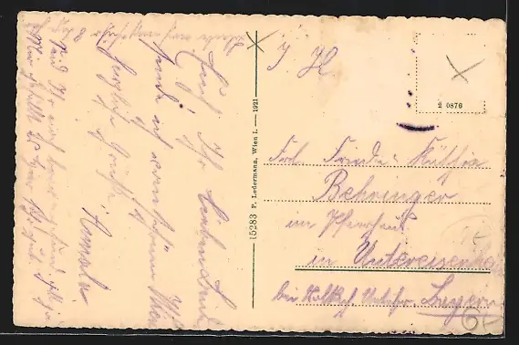 alte Ansichtskarte, gelaufen, Briefmarke entfernt, rückseitig Oberflächenschaden, guter Zustand