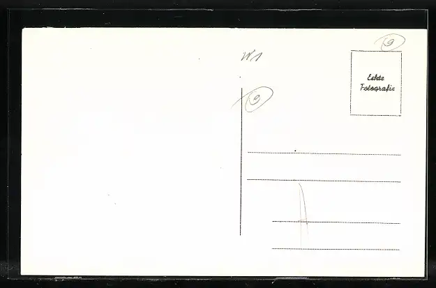 Personenbezogene Daten auf der Rückseite der Karte wurden durch blauen Textmarker unkenntlich gemacht. Die blauen Stellen sind auf die Vorderseite durchgeweicht und wirken sich negativ auf das Postkartenfoto aus