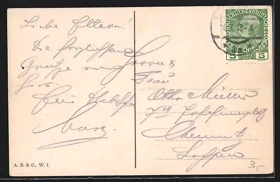 alte Ansichtskarte, gelaufen 1913, Eckknick li. oben, guter Zustand