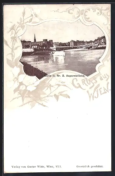AK Wien, Partie an der Aspernbrücke, Blumen-Passepartout