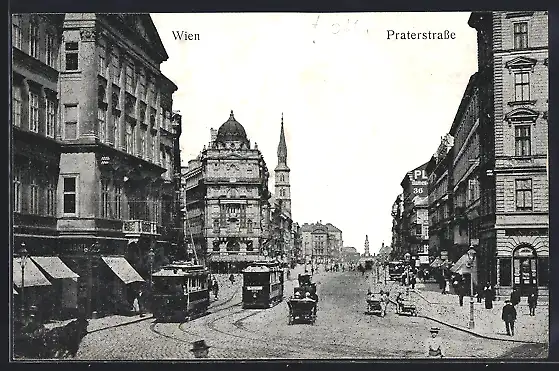 AK Wien, Partie in der Praterstrasse mit Strassenbahn