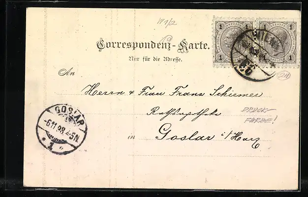 alte Ansichtskarte, gelaufen 1898, guter Zustand