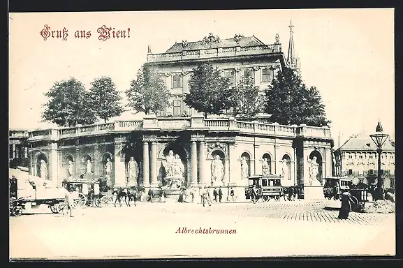 AK Wien, Pferdebahn am Albrechtsbrunnen