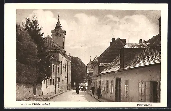 AK Wien-Pötzleinsdorf, Partie mit Pfarrkirche