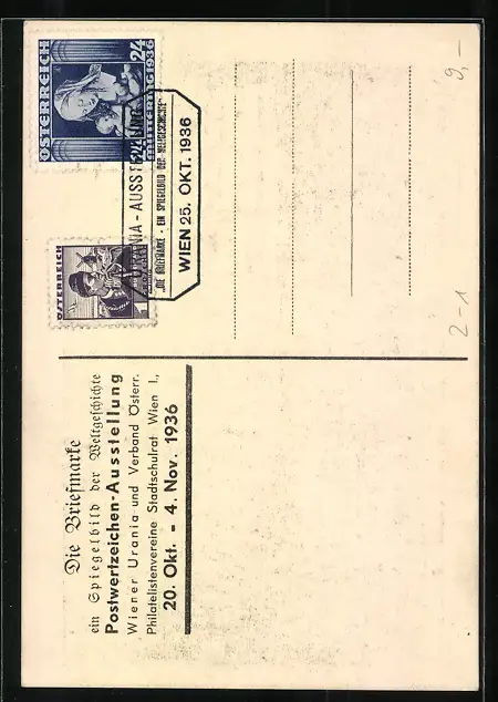 AK Wien, Postwertzeichen-Ausstellung 1936, Wiener Urania