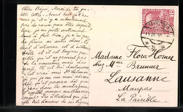 Personenbezogene Daten auf der Rückseite der Karte wurden durch blauen Textmarker unkenntlich gemacht. Die blauen Stellen sind auf die Vorderseite durchgeweicht und wirken sich negativ auf das Postkartenfoto aus