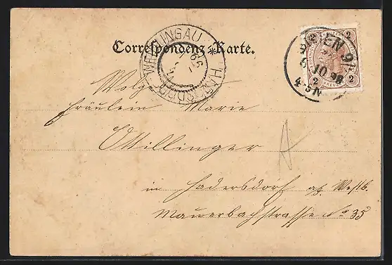 alte Ansichtskarte, gelaufen 1898, guter Zustand