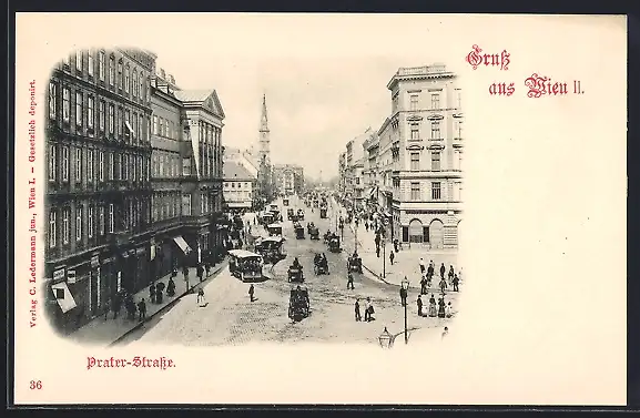 AK Wien, Praterstrasse m. Strassenbahn von oben gesehen