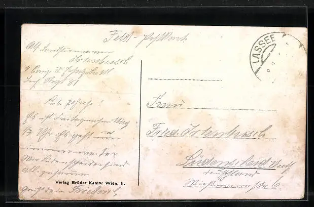 alte Ansichtskarte, gelaufen, Abriebspuren Ecken, Briefmarke entfernt, guter Zustand