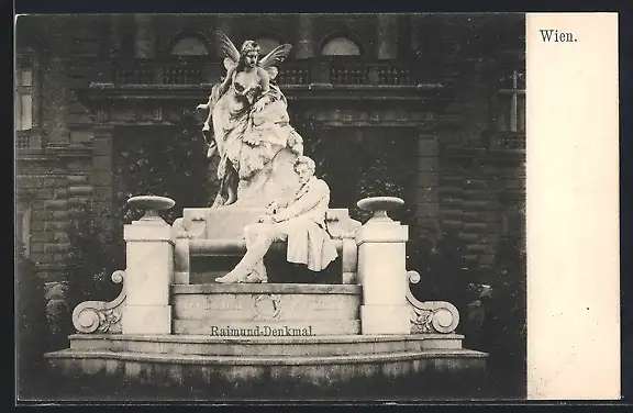 AK Wien, Raimund-Denkmal vor Gebäude